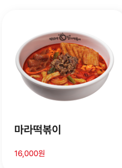 엽떡 앱에서 주문 가능한 메뉴