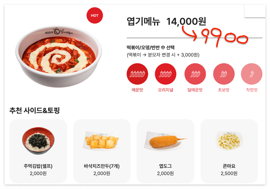 할인 혜택은 엽떡의 대표 메뉴인 엽기메뉴에 적용됩니다.